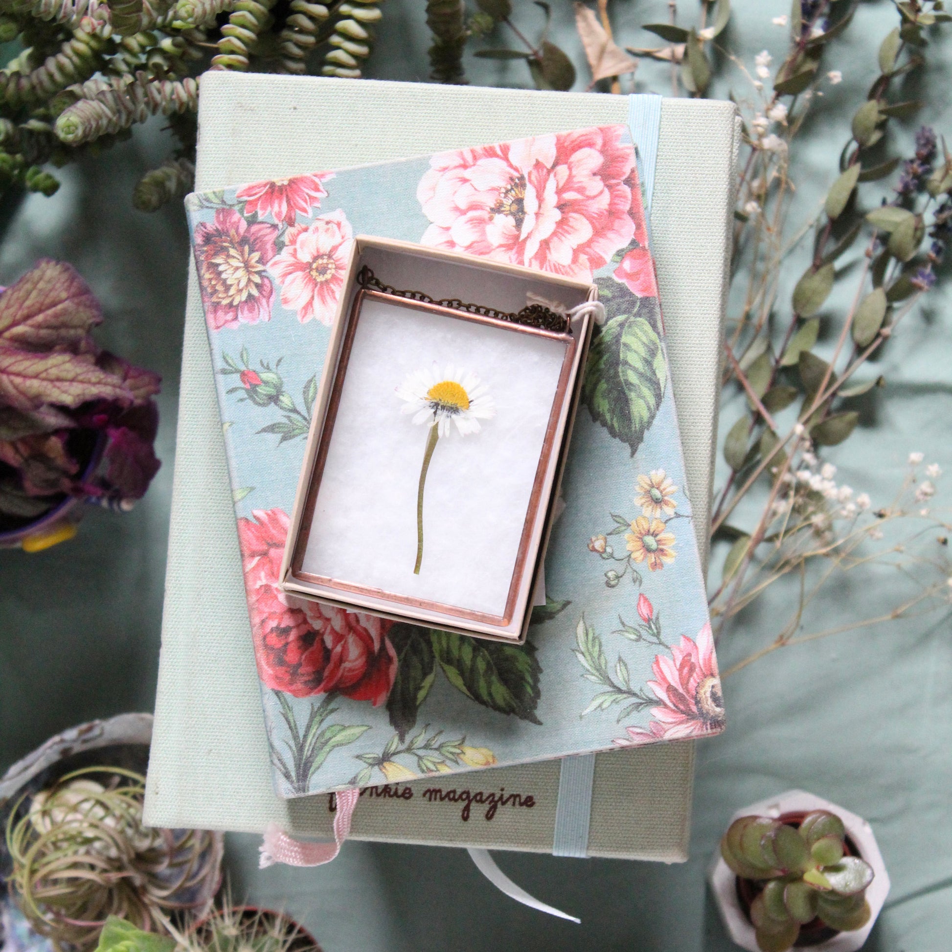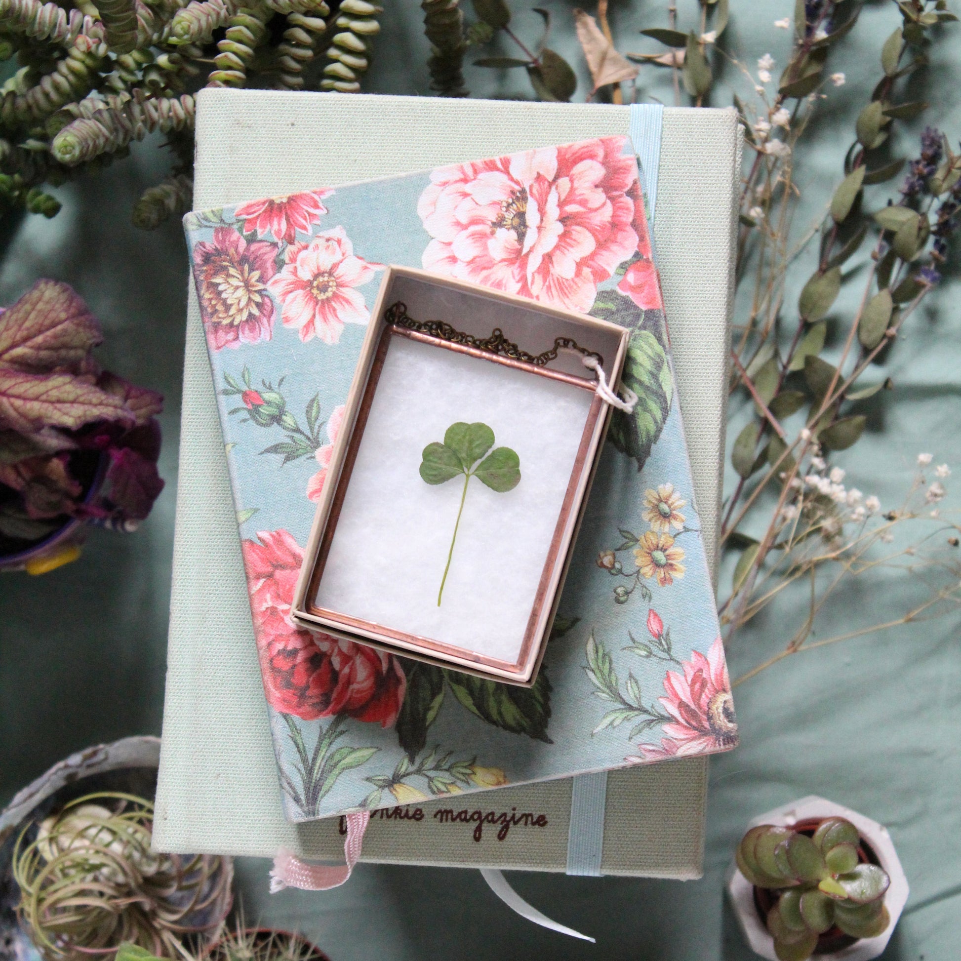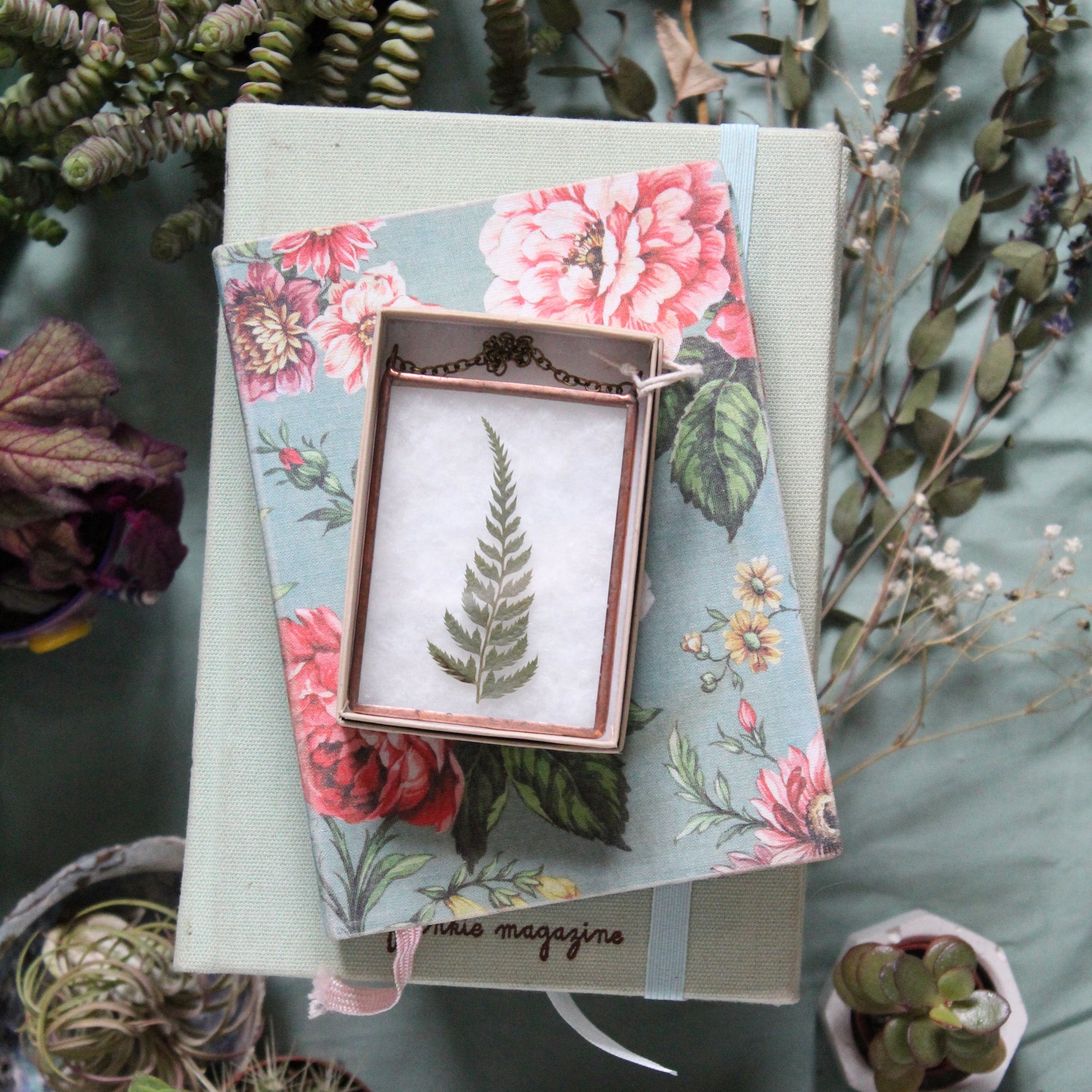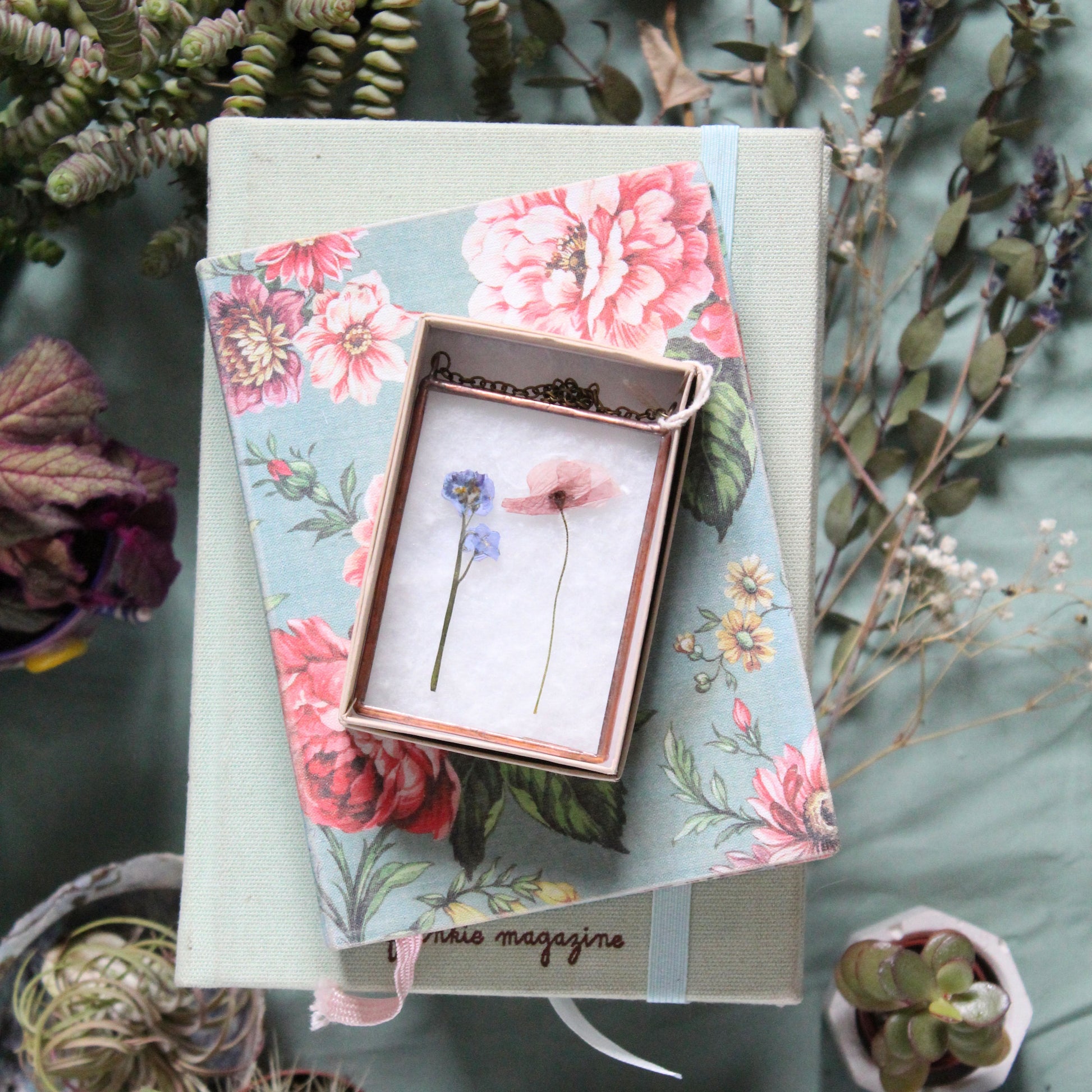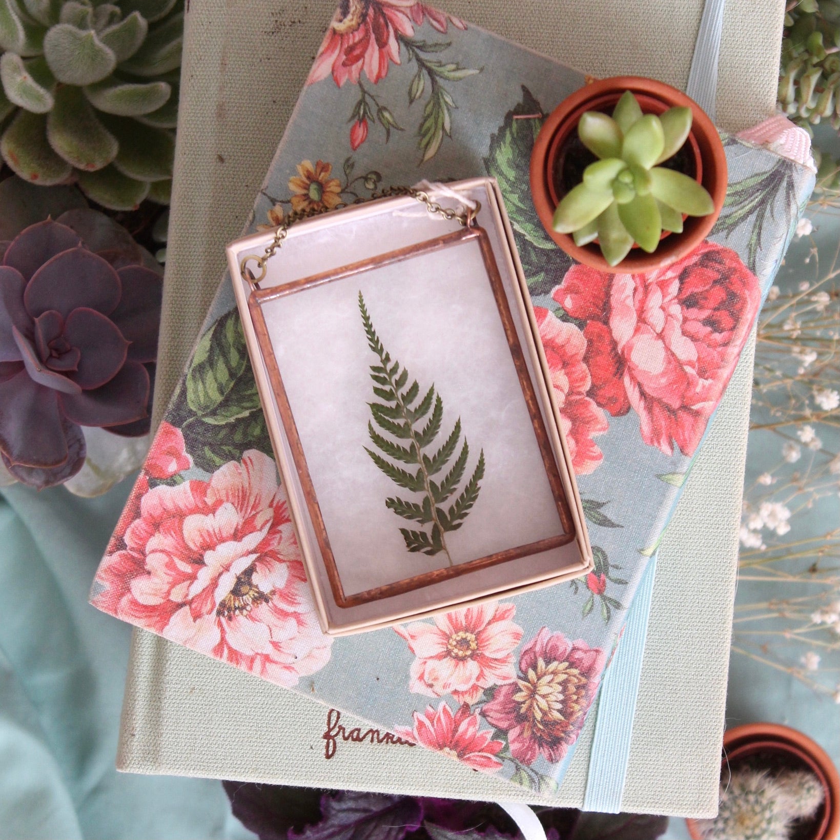 Picked in full bloom, each flower is carefully pressed for two weeks to preserve its delicate character. Arranged between 2 sheets of glass, the flowers seem to float in their frames, pure and timeless. Sealed with solder, I bring a raw beauty to each unique piece.