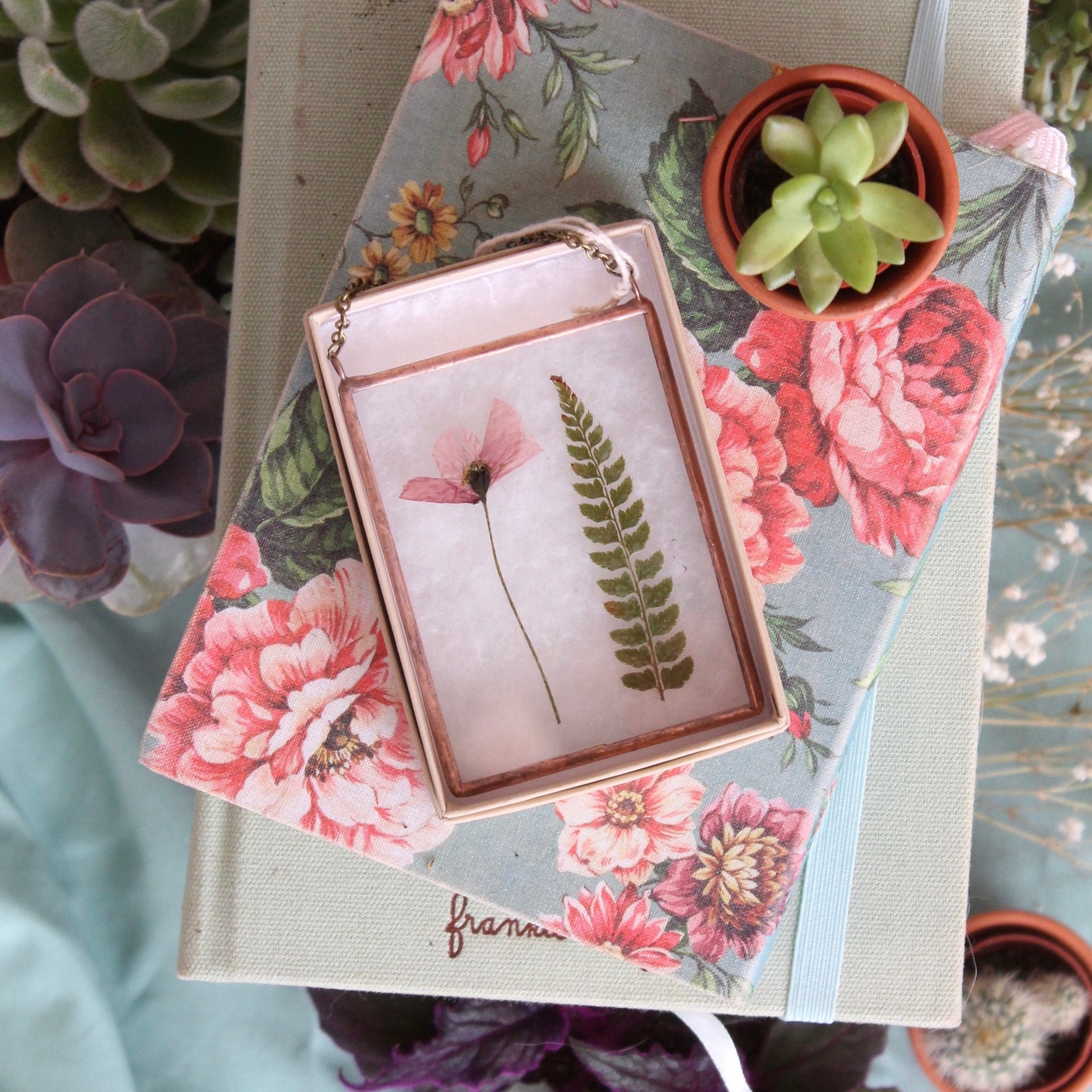Each frame features real flowers whose colour will fade over time, so it is best to keep them out of direct sunlight. Comes in a copper finish.