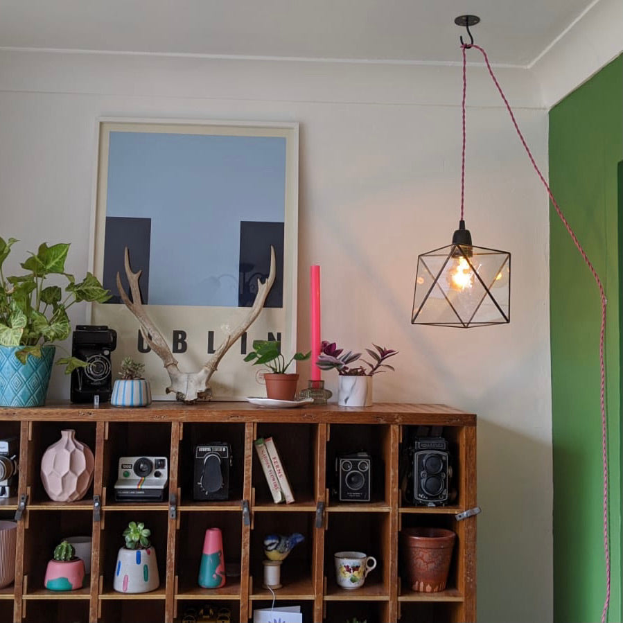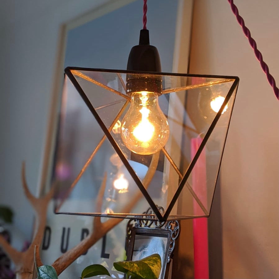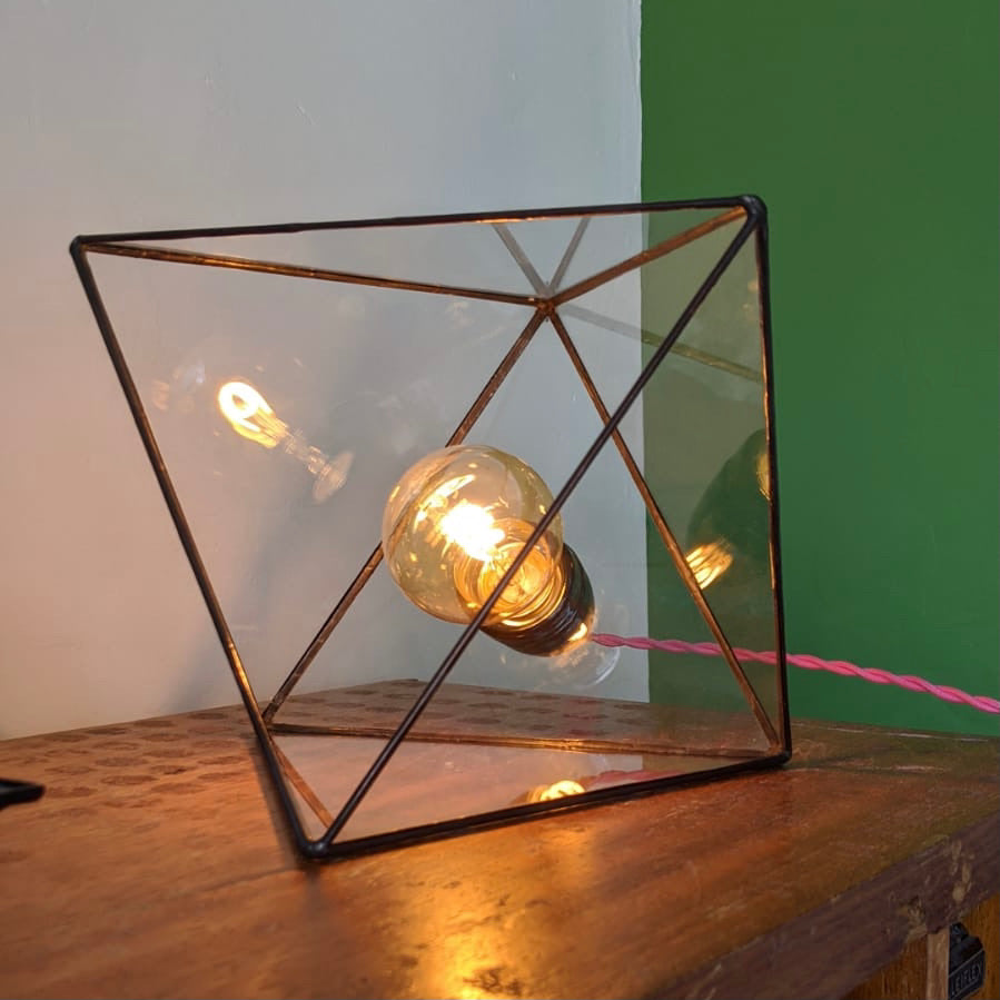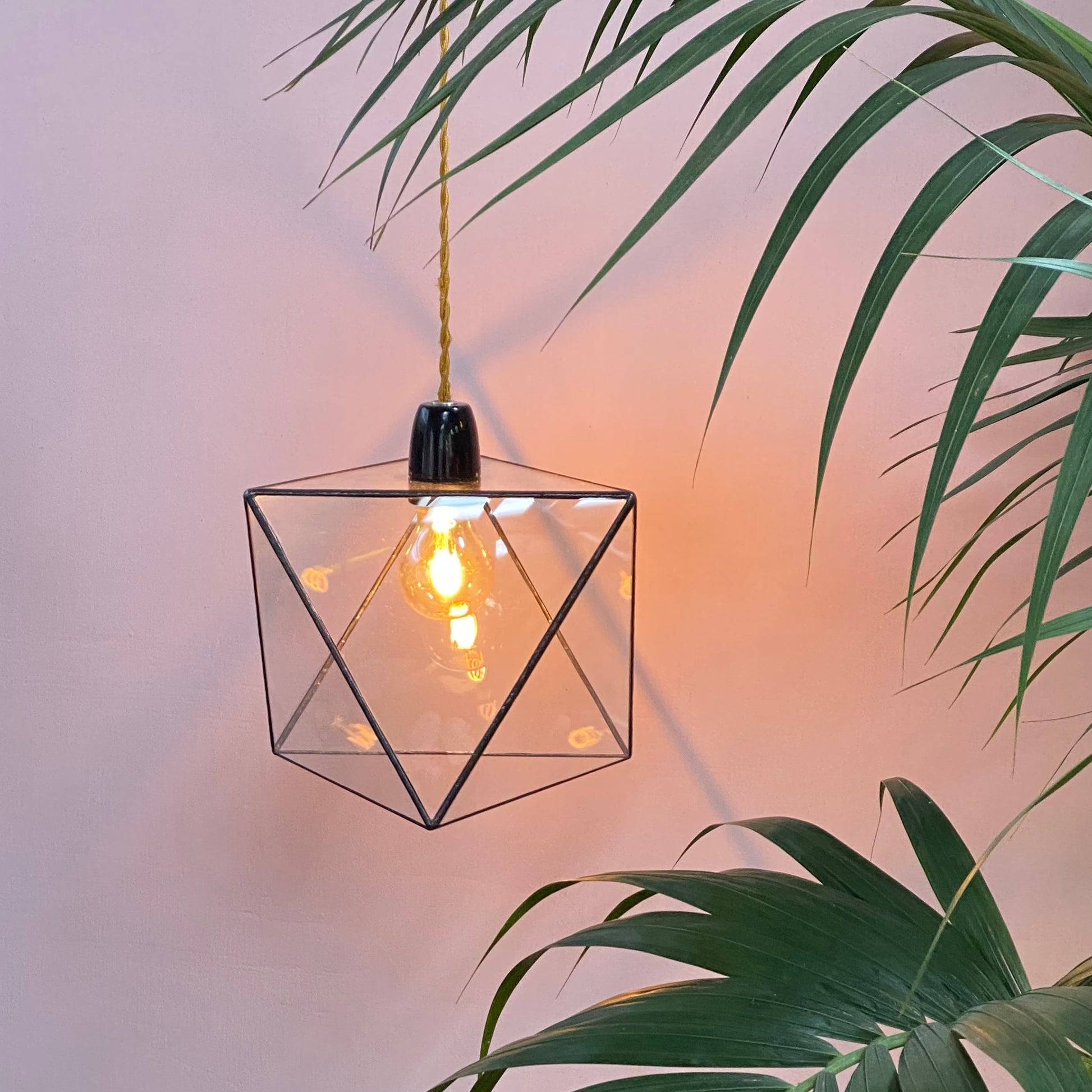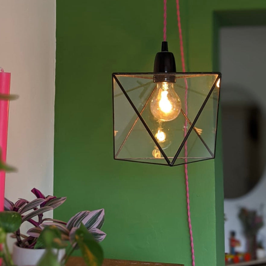 This mathematically inspired 8 sided light is simple sophistication, yet take a look from another angle and this many faceted light transforms itself, often looking like a completely different shape. Fitted with an energy efficient L.E.D. bulb for a soft flattering glow. Also sporting a choice of 3 bold colours Hot Pink, Bright Turquoise and Shining Gold to add a vibrant splash of colour to your decor.