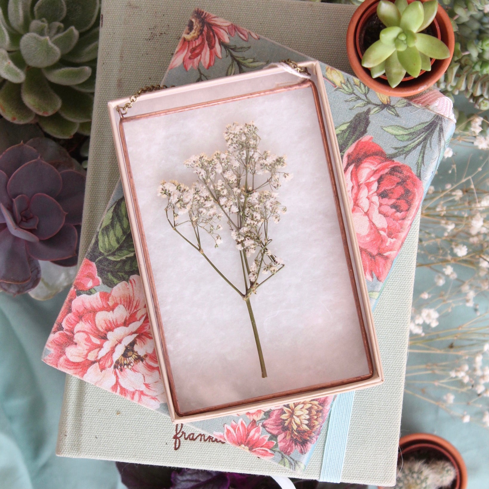 Each frame features real flowers whose colour will fade over time, so it is best to keep them out of direct sunlight. Comes in a copper finish.